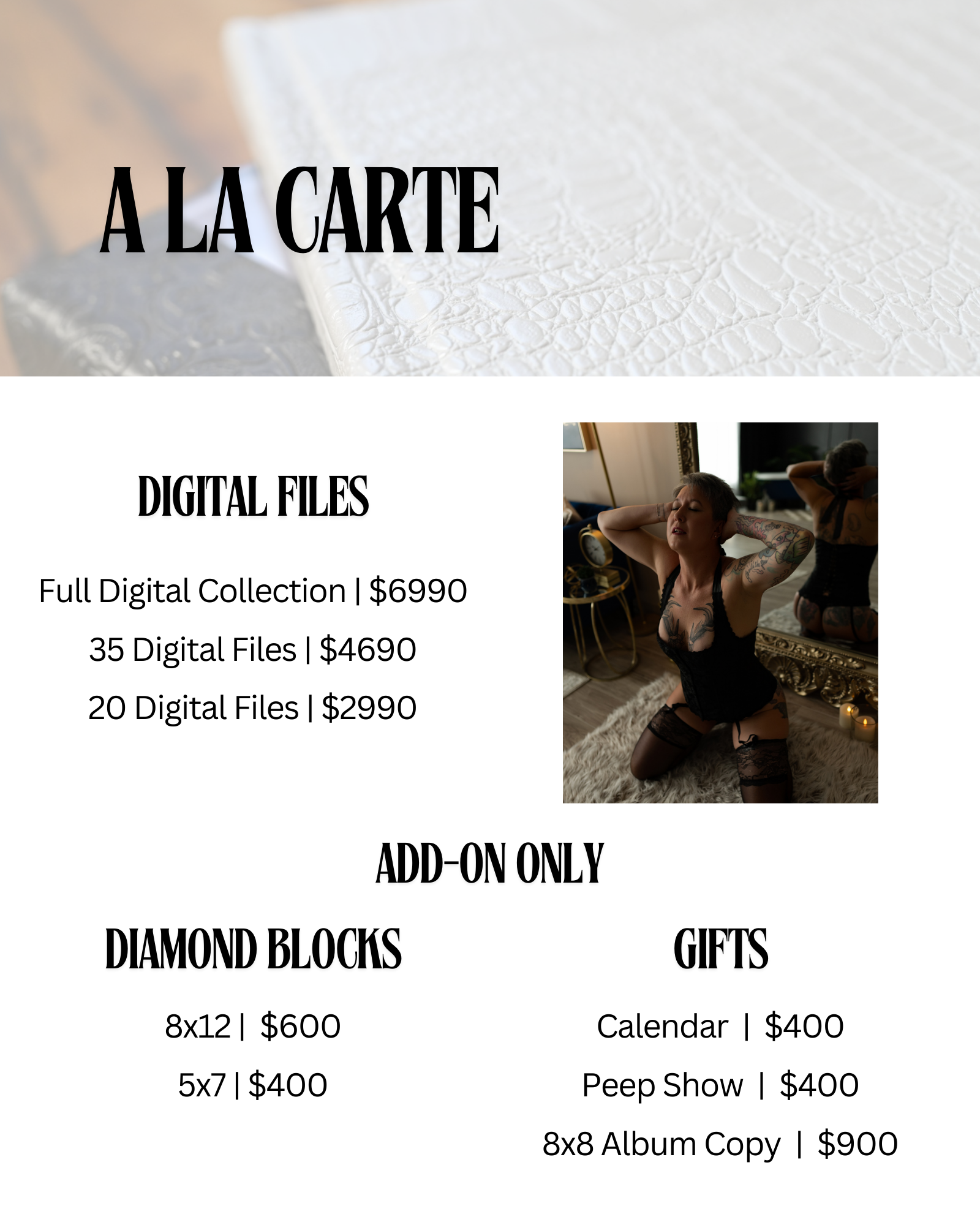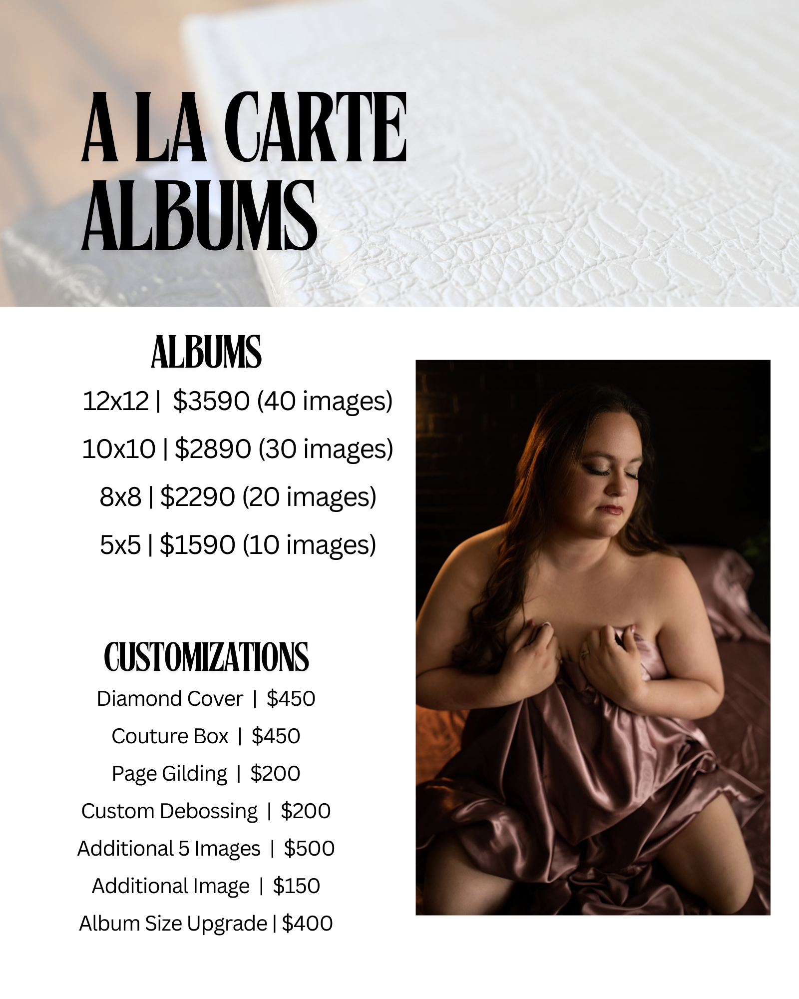 ▪️ The A La Carte Menu is where you can purchase individual items like Albums, Wall Art, and Digital Files. Please keep in mind our minimum purchase on all purchases is $1590.