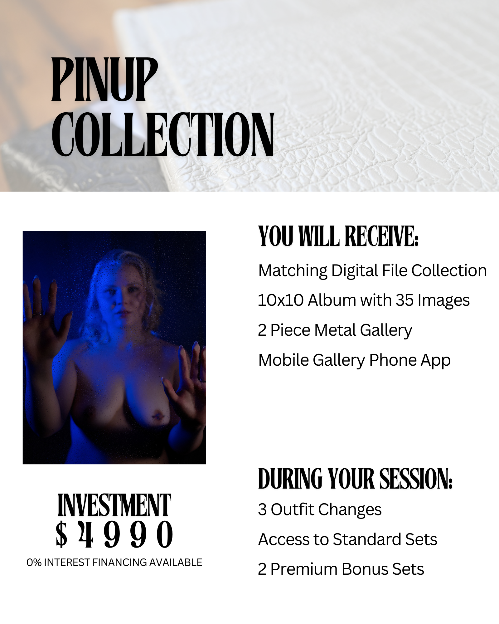 ▪️ The Collections are pre-configured packages of our most popular products bundled together at a discount. Our most popular Collection by far is the Pinup! A lot of people will add on a few extra products to their Collection to make it complete.